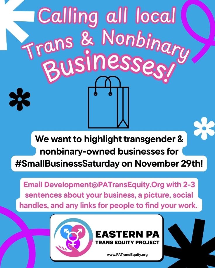 💙Email Development@PATransEquity.Org with 2-3 sentences about your business, a picture, social handles, and any links for people to find your work. 🩷
