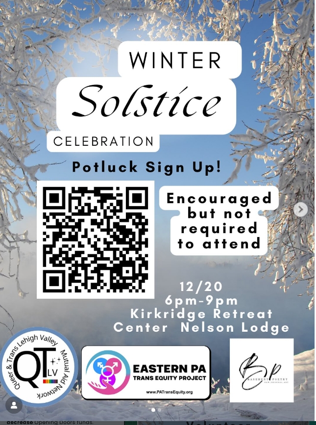 ❄️Queer &Trans Lehigh Valley is doing their potluck again! Link here (and in bio) to sign up ❄️